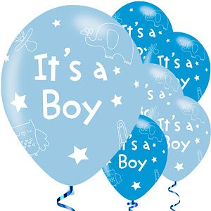 6-pack blå ballonger med vitt tryck It's a boy.