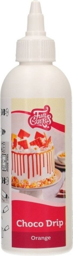FunCakes Choco Drip i orange är ett läckert dropp med chokladsmak och en blank färg. Perfekt för att dekorera kakor eller lägga till guld accenter till dina dekorationer.