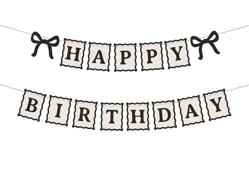 Denna stilrena 100 cm långa banner med rosetter skapar en sofistikerad festkänsla på barnkalaset eller födelsedagsfirandet, Bannern kommer färdigmonterad med svart snöre och är redo att hänga upp direkt ur förpackningen, Perfekt till eleganta födelsedagsfester, vuxenkalas eller som stilvull bakgrund till fotografering,