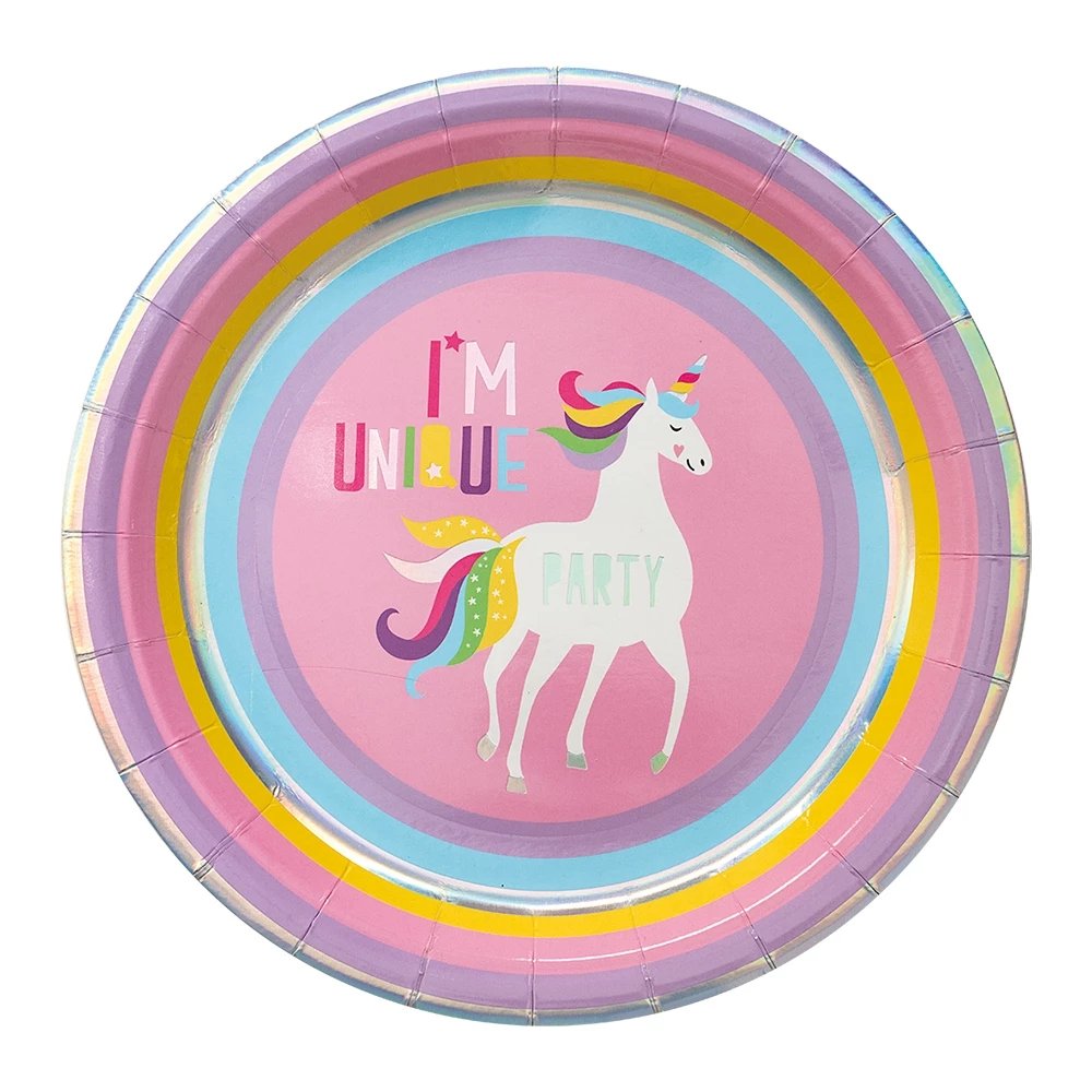 Papptallrikar - Enhörning - 8-pack - 23 cm