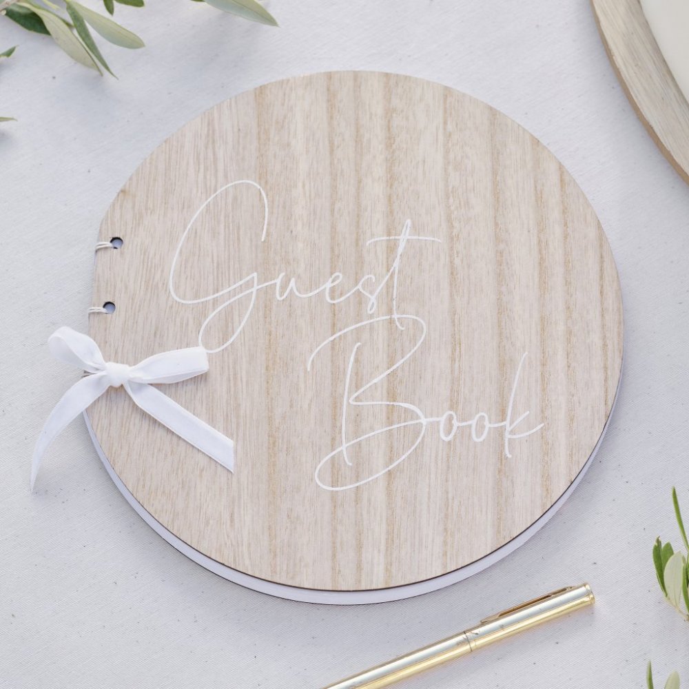 Rund gästbok - Trä - Sage Wedding