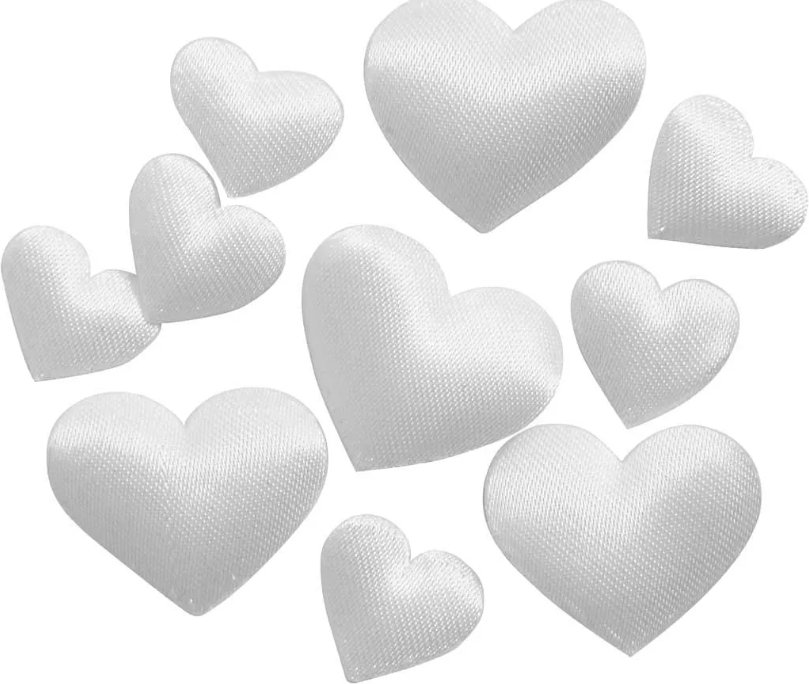 Jättefina vadderade satinhjärtan - så fint att strö ut på borden som dekoration, på inbjudningarna, tackkorten...!
