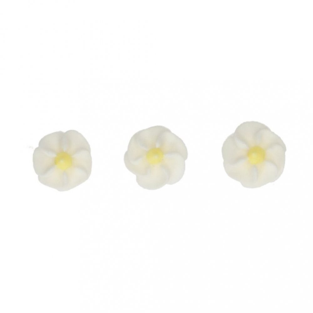 Vita och gula sockerblommor som är perfekta för att dekorera tårtor, muffins, kakor och andra bakverk.