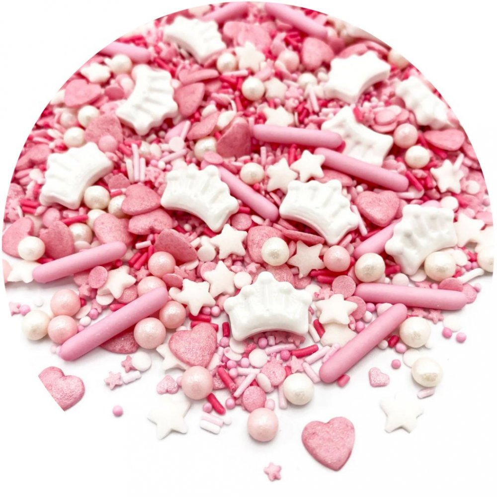 Supersöt strösselmix i prinsesstema i olika färger och former, små prinsesskronor m.m. Så fina till cupcakes, tårtor och andra bakverk.