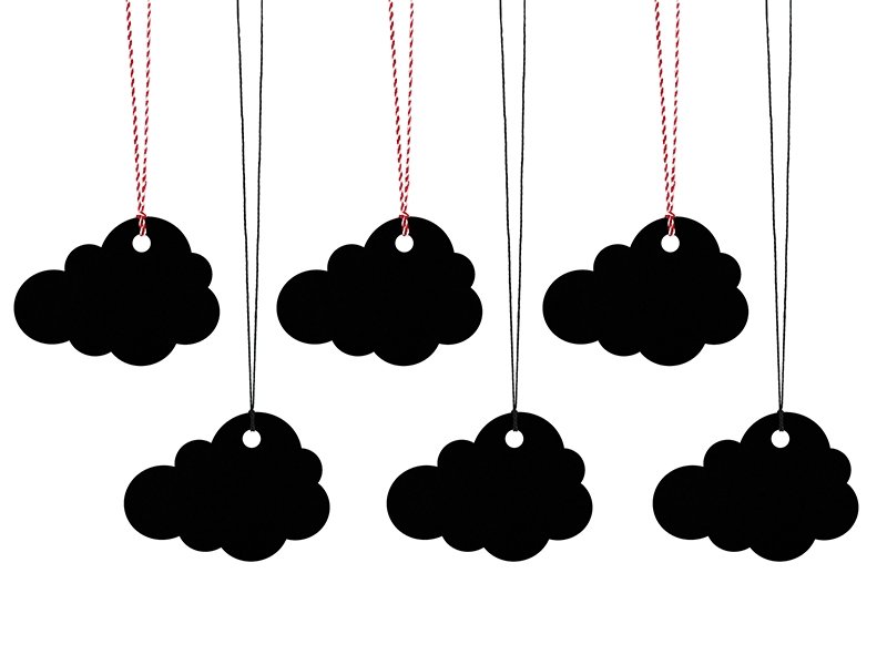 Tags i form av svarta moln. Förpackningen består av 6 stycken- Cirka 7.5x5.5 cm. Snöre inkluderat.
